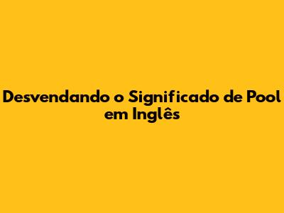 Olá pessoal! Se você já se deparou com a palavra "pool" em inglês e ficou um pouco confuso sobre o que ela significa, você veio ao lugar certo! Hoje, vamos mergulhar fundo no significado dessa palavra versátil e entender como ela é usada em diferentes contextos. Preparem-se para um passeio informativo e descontraído pelo mundo da língua inglesa. Vamos nessa!