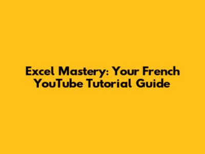 Excel Mastery: Your French YouTube Tutorial Guide