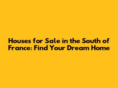 Find Your Dream Home: Houses For Sale In The South Of France