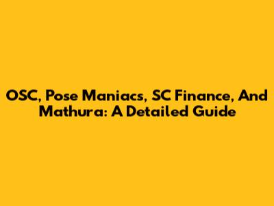 OSC, Pose Maniacs, SC Finance, And Mathura: A Detailed Guide