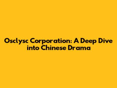 Osclysc Corporation: A Deep Dive Into Chinese Drama