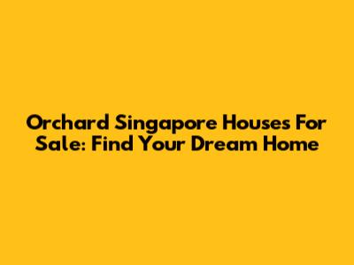 Orchard Singapore Houses For Sale: Find Your Dream Home